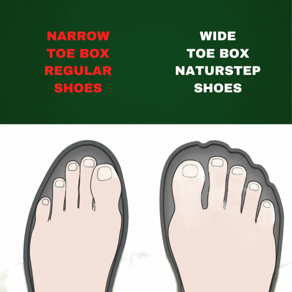 Many shoes constrict your toes, exacerbating foot problems and contributing to general foot pain that can radiate down to your heels. Naturstepwear features a roomy toe box that allows your toes to spread out naturally, relieving pressure and discomfort. This design is especially helpful for those with bunions, hammertoes, or general foot swelling, ensuring your entire foot, including your heels, remains comfortable and pressure-free.
